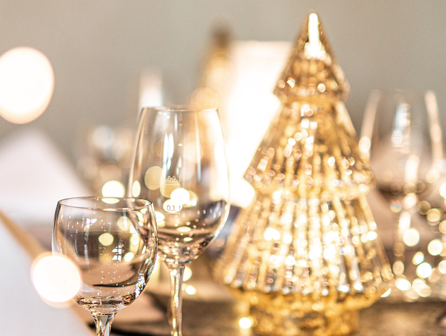 Freuen Sie sich auf kulinarische Highlights von feinem Kalbscarpaccio über hausgemachte Ravioli bis hin zu Black Angus Roastbeef oder einer festlichen vegetarischen Alternative - abgerundet von einem winterlichen Spekulatius-Parfait.
